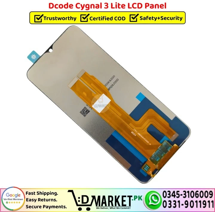 Option 2: Online Professional Repair with DMarket.pk Want expert repair from the comfort of your home? Our professional repair services at DMarket.pk make it easy! Simply visit our Repair Services page, fill out the form, and our agent will contact you with complete details and total charges. If you’re satisfied, courier your device to us. We’ll fix your DCode Cygnal 3 Lite LCD Panel screen and deliver it back fully repaired. Pay via cash on delivery only when you receive your fixed device. We believe this unique service sets us apart in Pakistan!