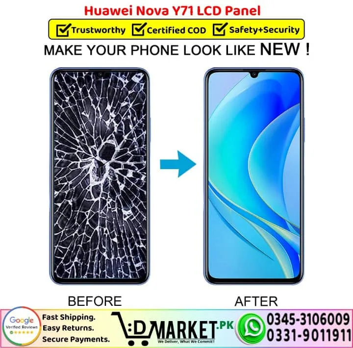 Option 2: Online Professional Repair with DMarket.pk Want expert repair from the comfort of your home? Our professional repair services at DMarket.pk make it easy! Simply visit our Repair Services page, fill out the form, and our agent will contact you with complete details and total charges. If you’re satisfied, courier your device to us. We’ll fix your Huawei Nova Y71 LCD Panel screen and deliver it back fully repaired. Pay via cash on delivery only when you receive your fixed device. We believe this unique service sets us apart in Pakistan!