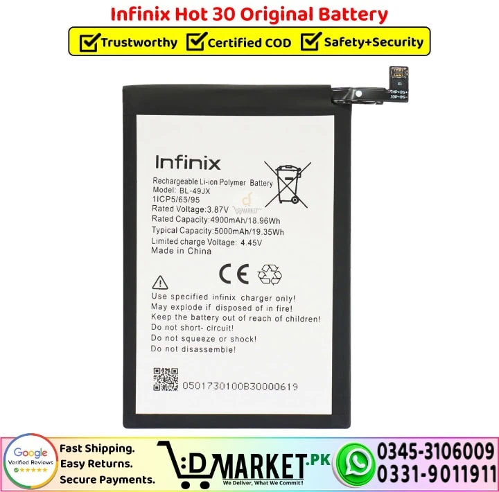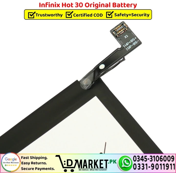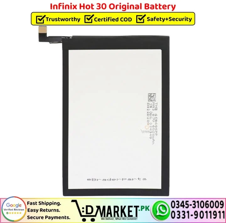 Order the Infinix Hot 30 Original Battery online from DMarket.pk with fast delivery, or buy directly from our Service Centre, both with OEM-grade tested quality.