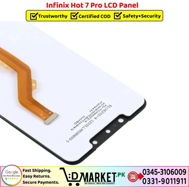 Option 2: Online Professional Repair with DMarket.pk Want expert repair from the comfort of your home? Our professional repair services at DMarket.pk make it easy! Simply visit our Repair Services page, fill out the form, and our agent will contact you with complete details and total charges. If you’re satisfied, courier your device to us. We’ll fix your Infinix Hot 7 Pro LCD Panel screen and deliver it back fully repaired. Pay via cash on delivery only when you receive your fixed device. We believe this unique service sets us apart in Pakistan!