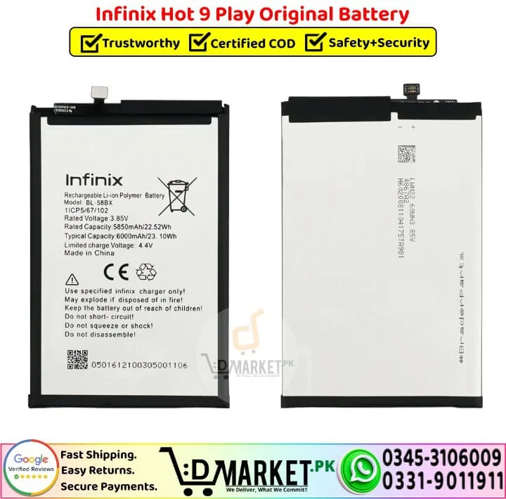 We make buying the right battery for your device simple, reliable, and stress-free. Here’s why thousands of customers trust DMarket.Pk for their Infinix Hot 9 Play Original Battery: