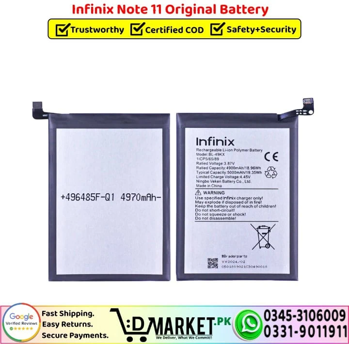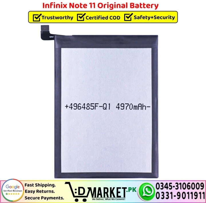 Order the Infinix Note 11 Original Battery online from DMarket.pk with fast delivery, or buy directly from our Service Centre, both with OEM-grade tested quality.