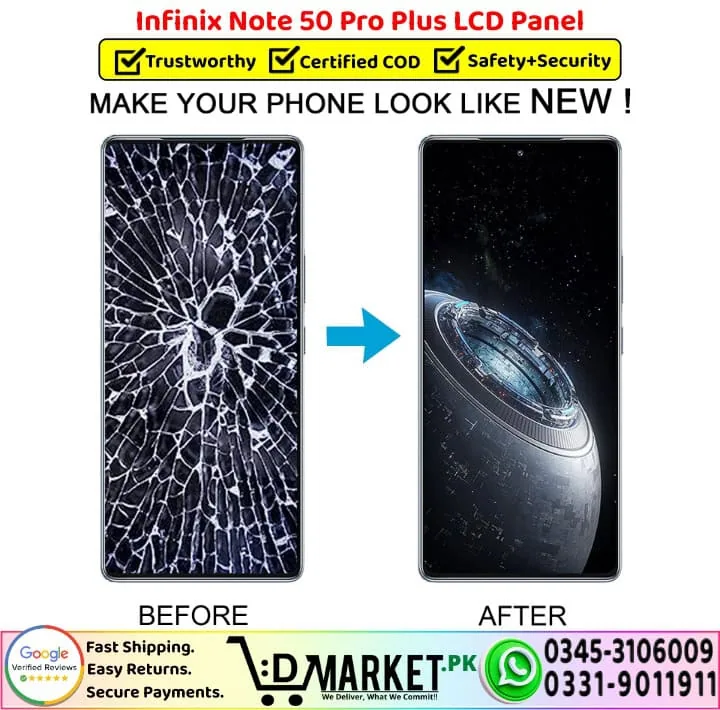 Option 2: Online Professional Repair with DMarket.pk Want expert repair from the comfort of your home? Our professional repair services at DMarket.pk make it easy! Simply visit our Repair Services page, fill out the form, and our agent will contact you with complete details and total charges. If you’re satisfied, courier your device to us. We’ll fix your Infinix Note 50 Pro Plus LCD Panel screen and deliver it back fully repaired. Pay via cash on delivery only when you receive your fixed device. We believe this unique service sets us apart in Pakistan!