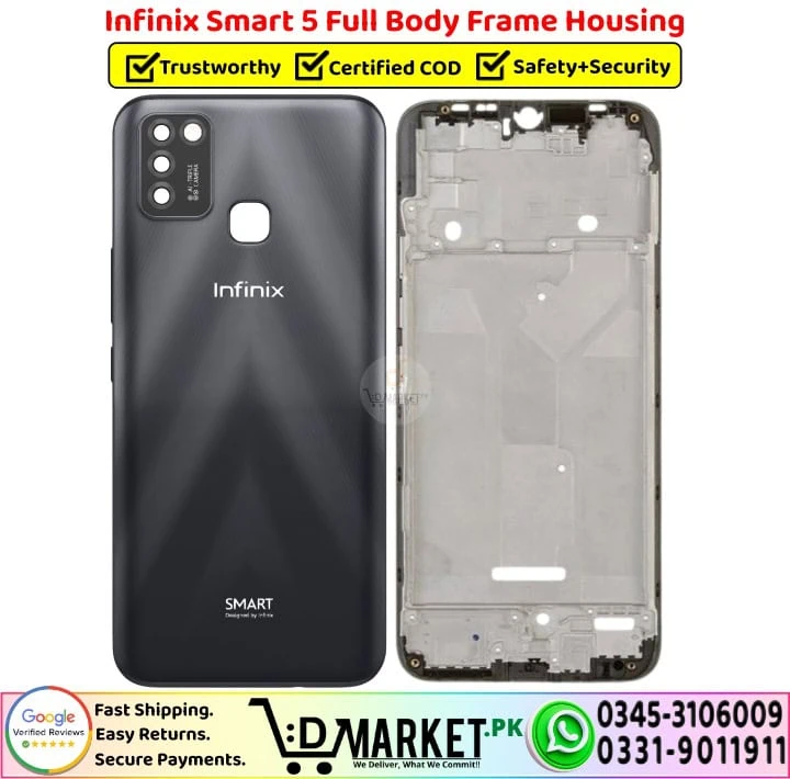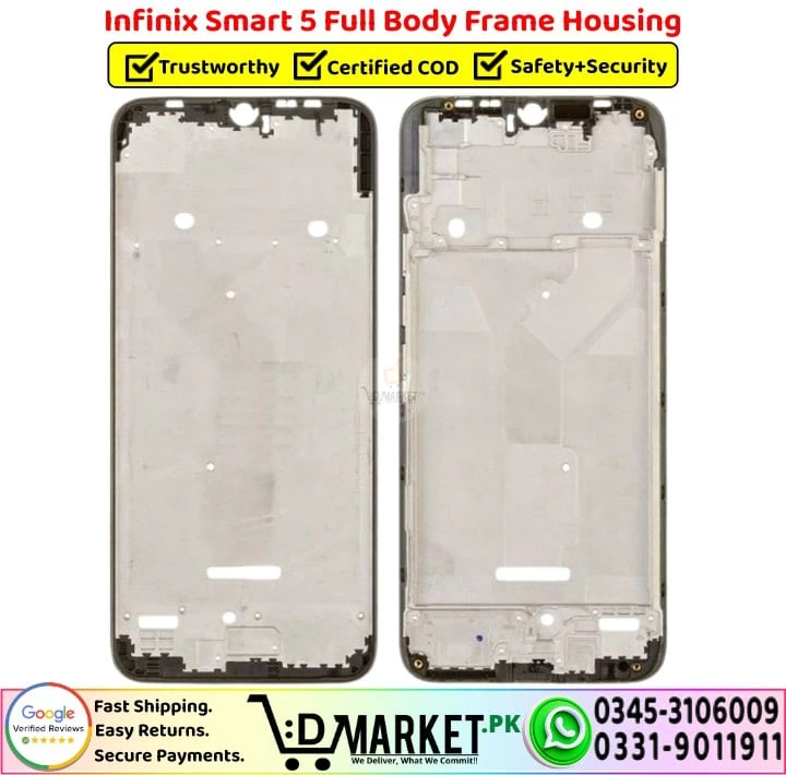 Every Infinix Smart 5 Full Body Frame Housing we supply is carefully checked for build quality, fitting, and durability before dispatch. This ensures you receive a strong, reliable Middle Frame plate housing that fits perfectly without gaps or alignment issues. No need to search the market — get genuine, high-quality mobile parts delivered to your doorstep with trusted after-sales support. Full Body Frame Housing Banner - DMarket.PkWe provide fast delivery and professional repair services across Pakistan, covering cities, towns, and villages nationwide. When you shop with us, you’re not just buying a part — you’re choosing trusted support and long-term reliability.