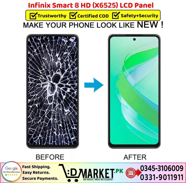 Option 2: Online Professional Repair with DMarket.pk Want expert repair from the comfort of your home? Our professional repair services at DMarket.pk make it easy! Simply visit our Repair Services page, fill out the form, and our agent will contact you with complete details and total charges. If you’re satisfied, courier your device to us. We’ll fix your Infinix Smart 8 HD X6525 LCD Panel screen and deliver it back fully repaired. Pay via cash on delivery only when you receive your fixed device. We believe this unique service sets us apart in Pakistan!