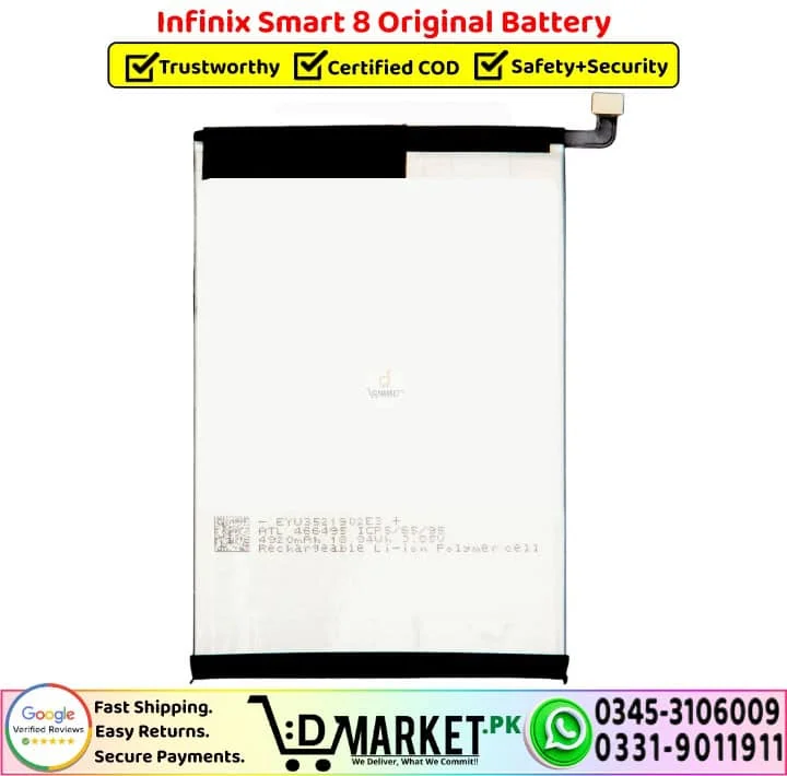 Order the Infinix Smart 8 Original Battery online from DMarket.pk with fast delivery, or buy directly from our Service Centre, both with OEM-grade tested quality.