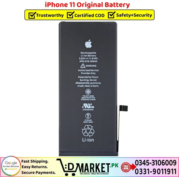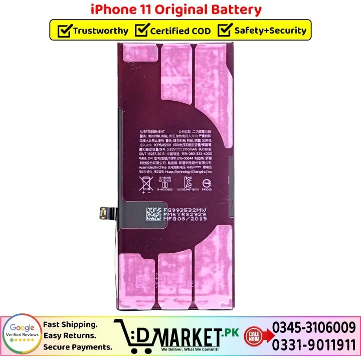 Order the iPhone 11 Original Battery online from DMarket.pk with fast delivery, or buy directly from our Service Centre, both with OEM-grade tested quality.