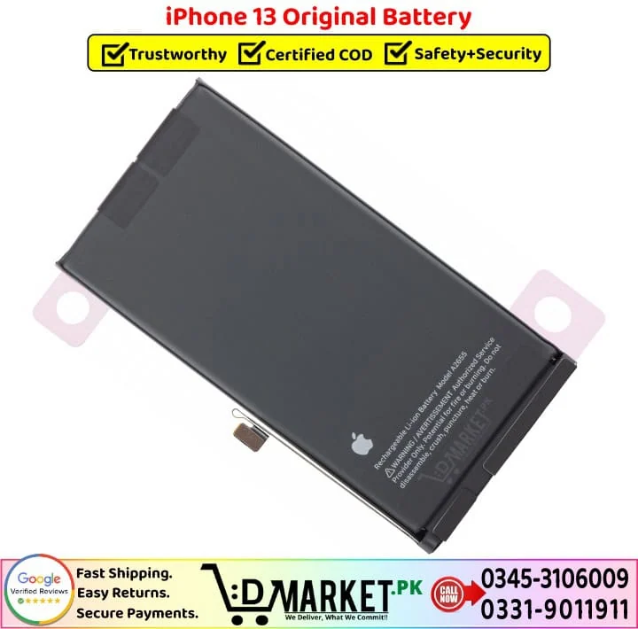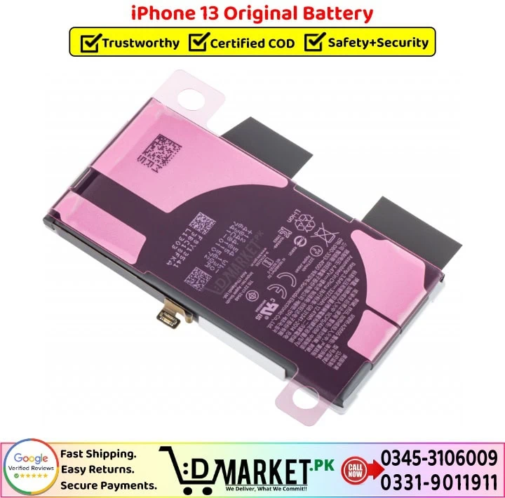 At D-LAB Repair Services, our experienced technicians provide professional battery replacement using OEM-grade parts. Whether your battery is swollen, faulty, or no longer delivering backup, we ensure safe removal of the old battery and proper installation of the new one.You can submit a request through our repair services page or visit our service center directly for complete assistance.We make buying the right battery for your device simple, reliable, and stress-free. Here’s why thousands of customers trust DMarket.Pk for their iPhone 13 Original Battery:
