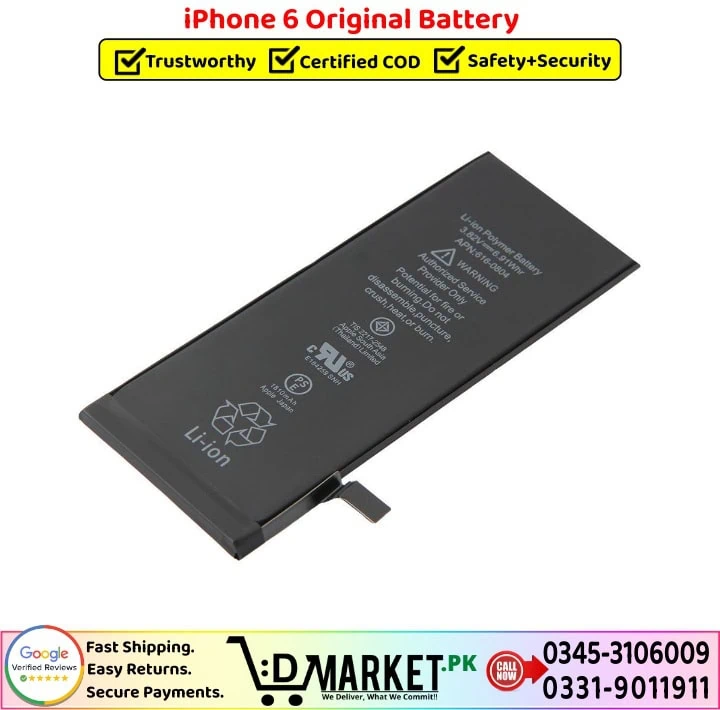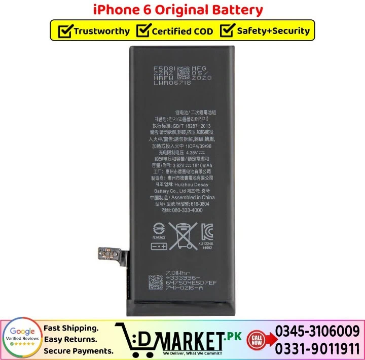 At D-LAB Repair Services, our experienced technicians provide professional battery replacement using OEM-grade parts. Whether your battery is swollen, faulty, or no longer delivering backup, we ensure safe removal of the old battery and proper installation of the new one.You can submit a request through our repair services page or visit our service center directly for complete assistance.We make buying the right battery for your device simple, reliable, and stress-free. Here’s why thousands of customers trust DMarket.Pk for their iPhone 6 Original Battery: