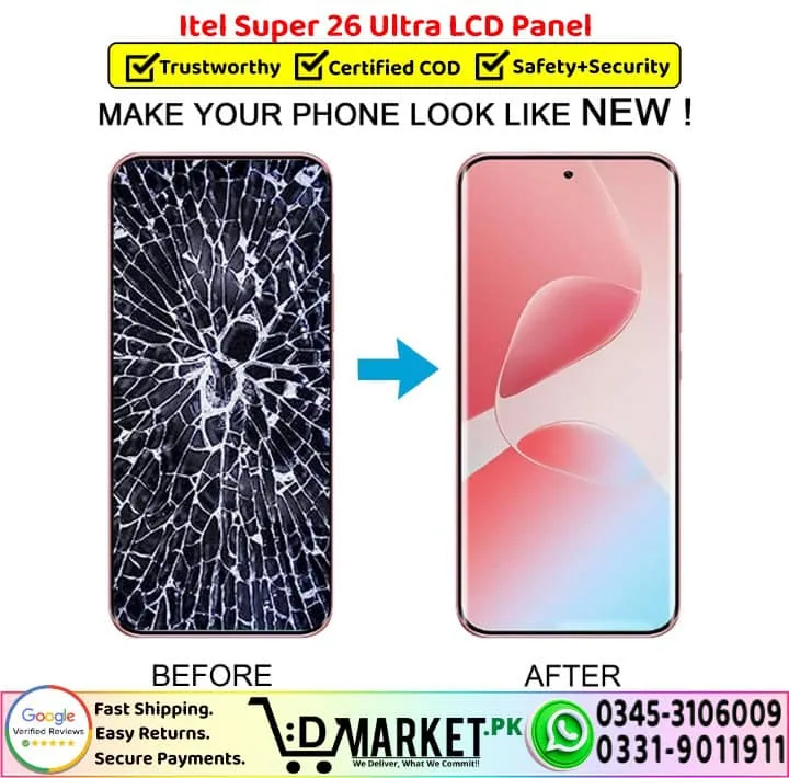 Option 2: Online Professional Repair with DMarket.pk Want expert repair from the comfort of your home? Our professional repair services at DMarket.pk make it easy! Simply visit our Repair Services page, fill out the form, and our agent will contact you with complete details and total charges. If you’re satisfied, courier your device to us. We’ll fix your iTel Super 26 Ultra LCD Panel screen and deliver it back fully repaired. Pay via cash on delivery only when you receive your fixed device. We believe this unique service sets us apart in Pakistan!