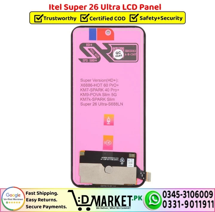 Compatibility for the iTel Super 26 Ultra LCD Panel can vary because different factories use different diodes, ICs, and internal parts. That’s why we can’t share a fixed list of which other models may match. Our team keeps a tested compatibility list updated in the backend. For the latest and accurate info about which models are currently compatible, just contact the DMarket.Pk Sales Team — they’ll guide you right away.