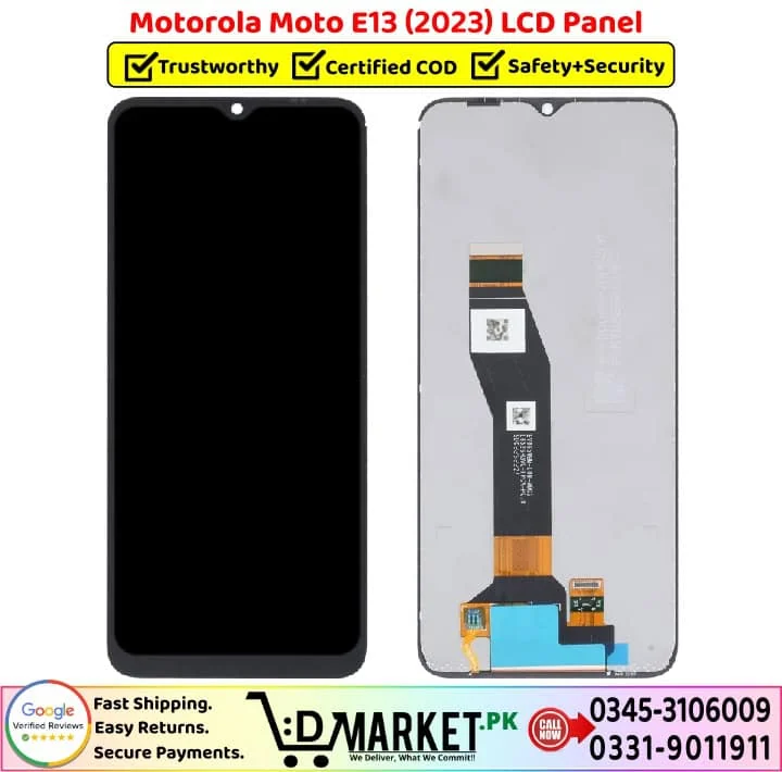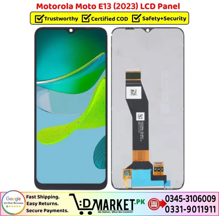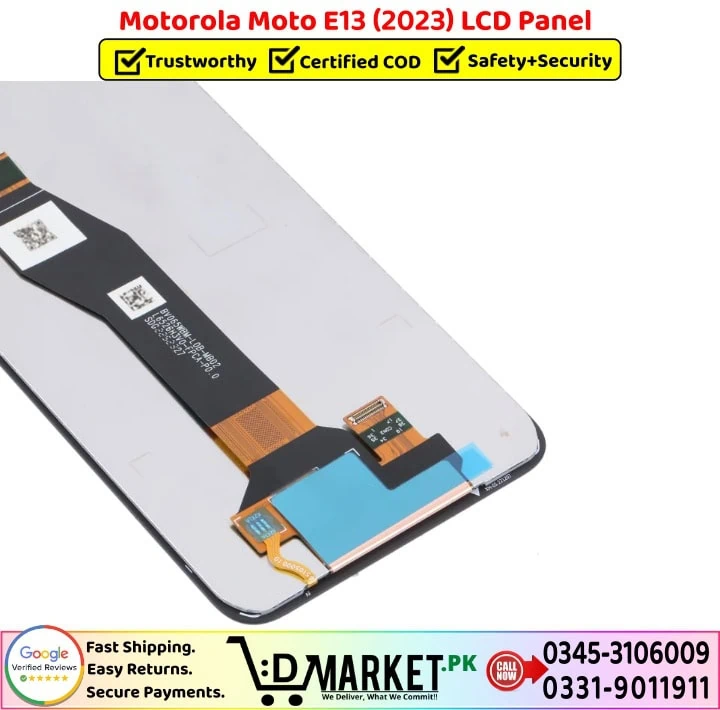 Option 2: Online Professional Repair with DMarket.pk Want expert repair from the comfort of your home? Our professional repair services at DMarket.pk make it easy! Simply visit our Repair Services page, fill out the form, and our agent will contact you with complete details and total charges. If you’re satisfied, courier your device to us. We’ll fix your Motorola Moto E13 LCD Panel screen and deliver it back fully repaired. Pay via cash on delivery only when you receive your fixed device. We believe this unique service sets us apart in Pakistan!