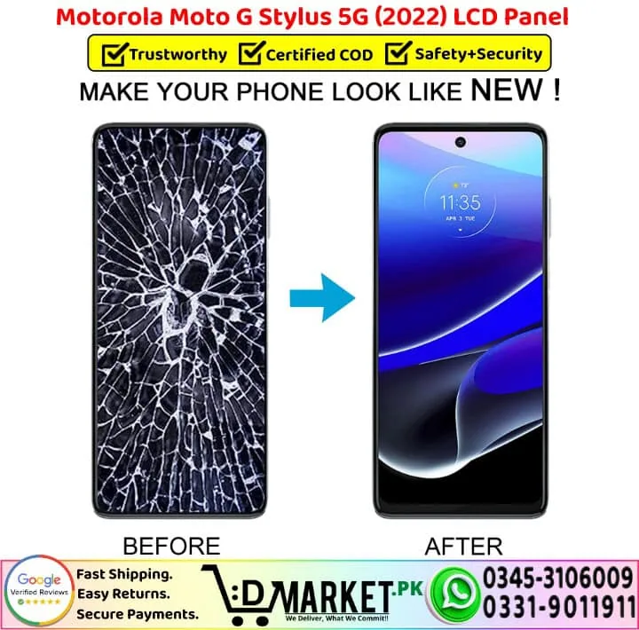 Option 2: Online Professional Repair with DMarket.pk Want expert repair from the comfort of your home? Our professional repair services at DMarket.pk make it easy! Simply visit our Repair Services page, fill out the form, and our agent will contact you with complete details and total charges. If you’re satisfied, courier your device to us. We’ll fix your Motorola Moto G Stylus 5G 2022 LCD Panel screen and deliver it back fully repaired. Pay via cash on delivery only when you receive your fixed device. We believe this unique service sets us apart in Pakistan!