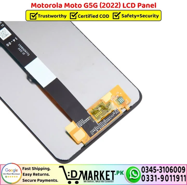 Option 2: Online Professional Repair with DMarket.pk Want expert repair from the comfort of your home? Our professional repair services at DMarket.pk make it easy! Simply visit our Repair Services page, fill out the form, and our agent will contact you with complete details and total charges. If you’re satisfied, courier your device to us. We’ll fix your Motorola Moto G5G 2022 LCD Panel screen and deliver it back fully repaired. Pay via cash on delivery only when you receive your fixed device. We believe this unique service sets us apart in Pakistan!