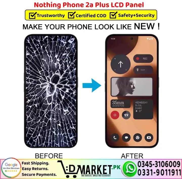 Option 2: Online Professional Repair with DMarket.pk Want expert repair from the comfort of your home? Our professional repair services at DMarket.pk make it easy! Simply visit our Repair Services page, fill out the form, and our agent will contact you with complete details and total charges. If you’re satisfied, courier your device to us. We’ll fix your Nothing Phone 2a Plus LCD Panel screen and deliver it back fully repaired. Pay via cash on delivery only when you receive your fixed device. We believe this unique service sets us apart in Pakistan!