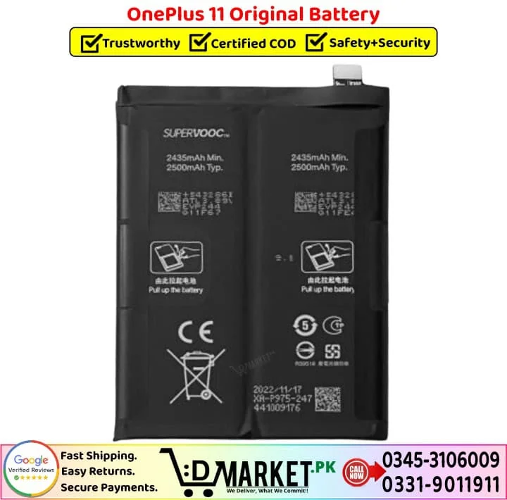Order the OnePlus 11 Original Battery online from DMarket.pk with fast delivery, or buy directly from our Service Centre, both with OEM-grade tested quality.