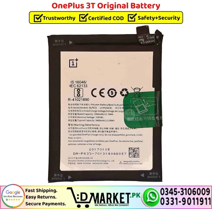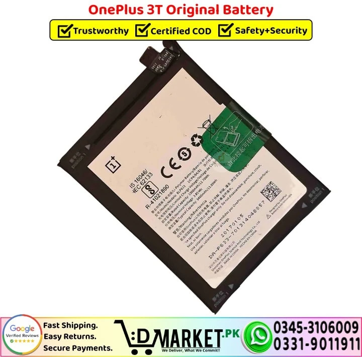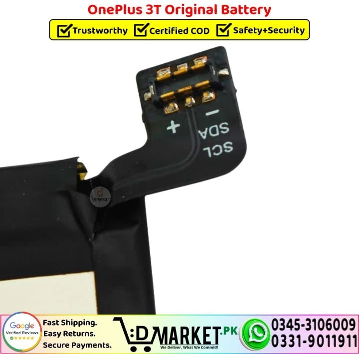 At D-LAB Repair Services, our experienced technicians provide professional battery replacement using OEM-grade parts. Whether your battery is swollen, faulty, or no longer delivering backup, we ensure safe removal of the old battery and proper installation of the new one.You can submit a request through our repair services page or visit our service center directly for complete assistance.We make buying the right battery for your device simple, reliable, and stress-free. Here’s why thousands of customers trust DMarket.Pk for their OnePlus 3T Original Battery: