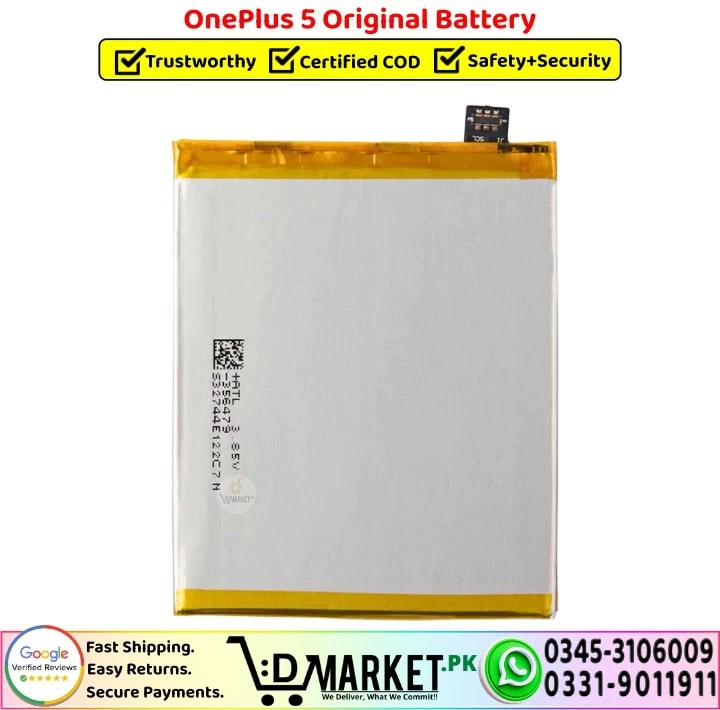 Power up your phone with the OnePlus 5 Original Battery. This OEM-grade replacement delivers reliable backup time, consistent performance, and a perfect fit. Order now from DMarket.pk with fast and secure delivery anywhere in Pakistan.Original Batteries Banner - DMarket.Pk