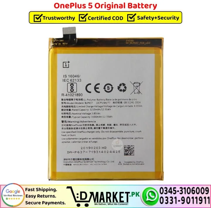 We make buying the right battery for your device simple, reliable, and stress-free. Here’s why thousands of customers trust DMarket.Pk for their OnePlus 5 Original Battery: