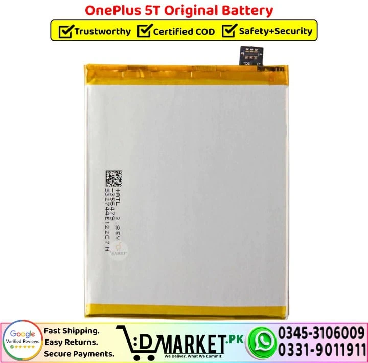Power up your phone with the OnePlus 5T Original Battery. This OEM-grade replacement delivers reliable backup time, consistent performance, and a perfect fit. Order now from DMarket.pk with fast and secure delivery anywhere in Pakistan.Original Batteries Banner - DMarket.Pk