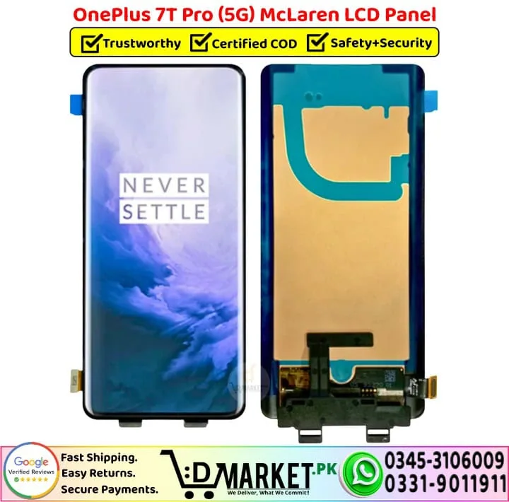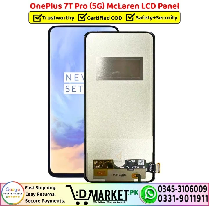 Option 2: Online Professional Repair with DMarket.pk Want expert repair from the comfort of your home? Our professional repair services at DMarket.pk make it easy! Simply visit our Repair Services page, fill out the form, and our agent will contact you with complete details and total charges. If you’re satisfied, courier your device to us. We’ll fix your OnePlus 7T Pro 5G McLaren LCD Panel screen and deliver it back fully repaired. Pay via cash on delivery only when you receive your fixed device. We believe this unique service sets us apart in Pakistan!