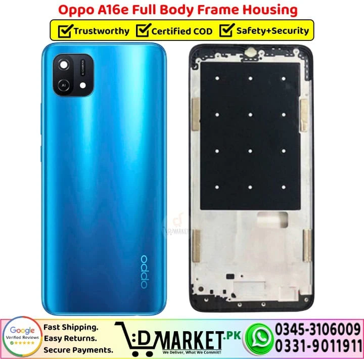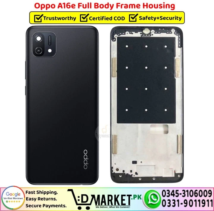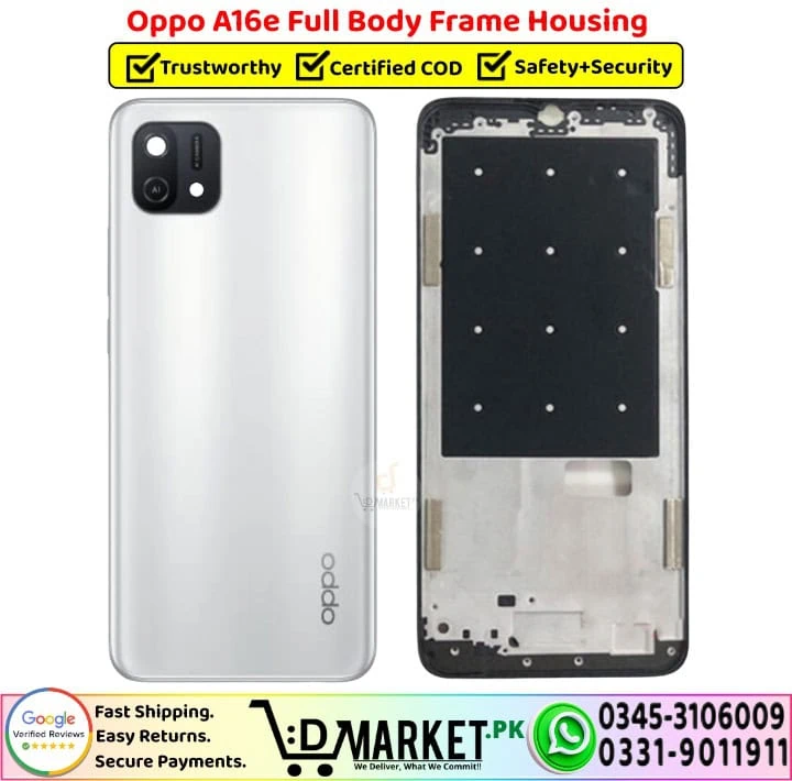 Every Oppo A16e Full Body Frame Housing we supply is carefully checked for build quality, fitting, and durability before dispatch. This ensures you receive a strong, reliable Middle Frame plate housing that fits perfectly without gaps or alignment issues. No need to search the market — get genuine, high-quality mobile parts delivered to your doorstep with trusted after-sales support. Full Body Frame Housing Banner - DMarket.PkWe provide fast delivery and professional repair services across Pakistan, covering cities, towns, and villages nationwide. When you shop with us, you’re not just buying a part — you’re choosing trusted support and long-term reliability.