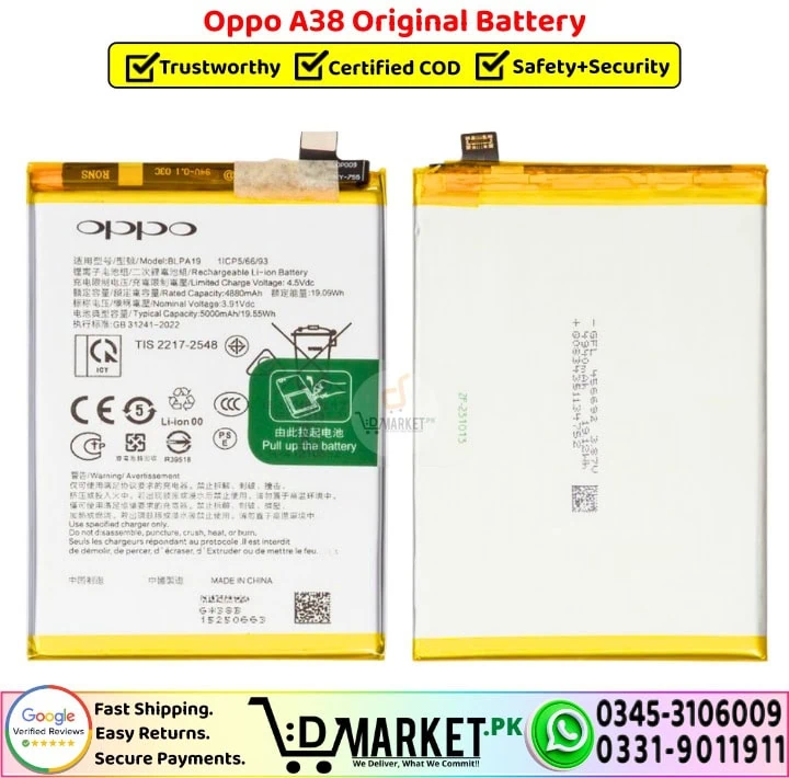 Order the Oppo A38 Original Battery online from DMarket.pk with fast delivery, or buy directly from our Service Centre, both with OEM-grade tested quality.