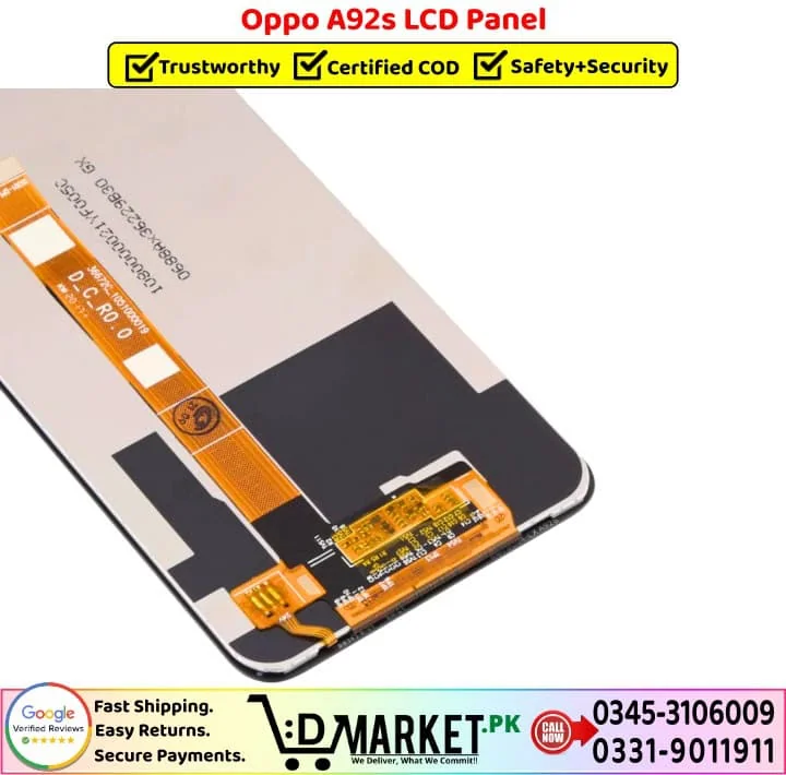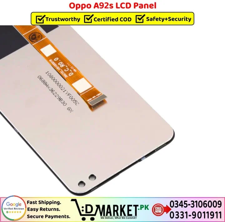 Option 2: Online Professional Repair with DMarket.pk Want expert repair from the comfort of your home? Our professional repair services at DMarket.pk make it easy! Simply visit our Repair Services page, fill out the form, and our agent will contact you with complete details and total charges. If you’re satisfied, courier your device to us. We’ll fix your Oppo A92s LCD Panel screen and deliver it back fully repaired. Pay via cash on delivery only when you receive your fixed device. We believe this unique service sets us apart in Pakistan!