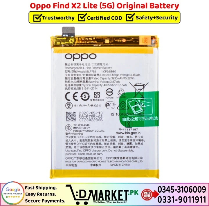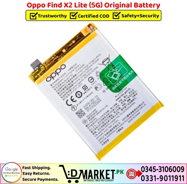 Order the Oppo Find X2 Lite 5G Original Battery online from DMarket.pk with fast delivery, or buy directly from our Service Centre, both with OEM-grade tested quality.