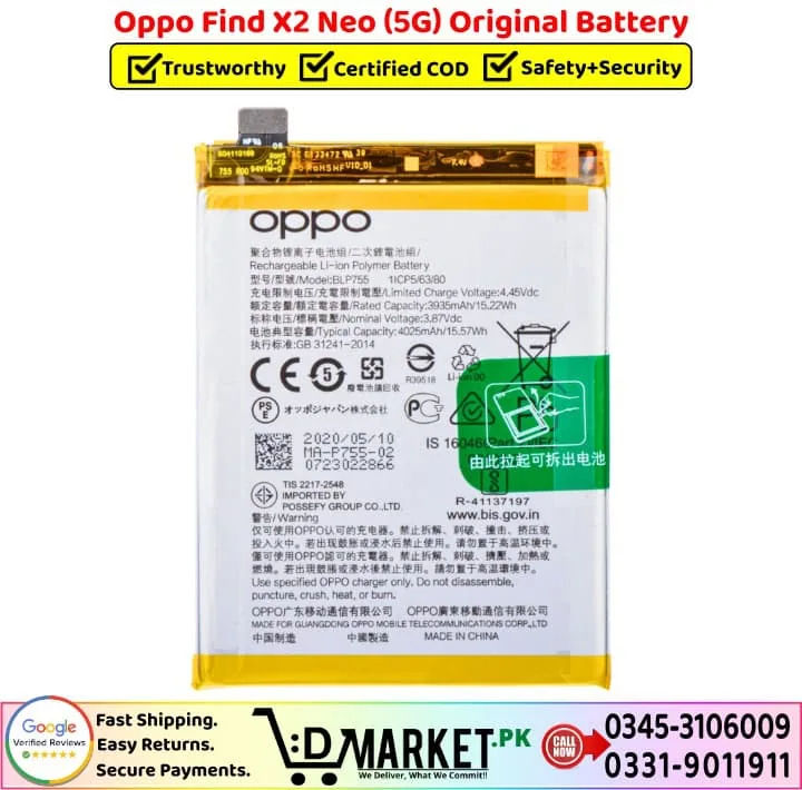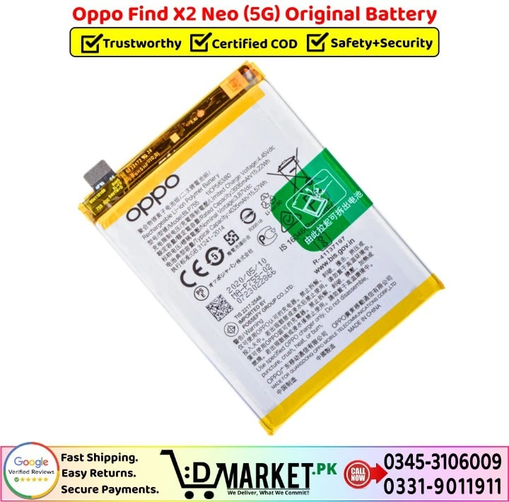 Order the Oppo Find X2 Neo 5G Original Battery online from DMarket.pk with fast delivery, or buy directly from our Service Centre, both with OEM-grade tested quality.