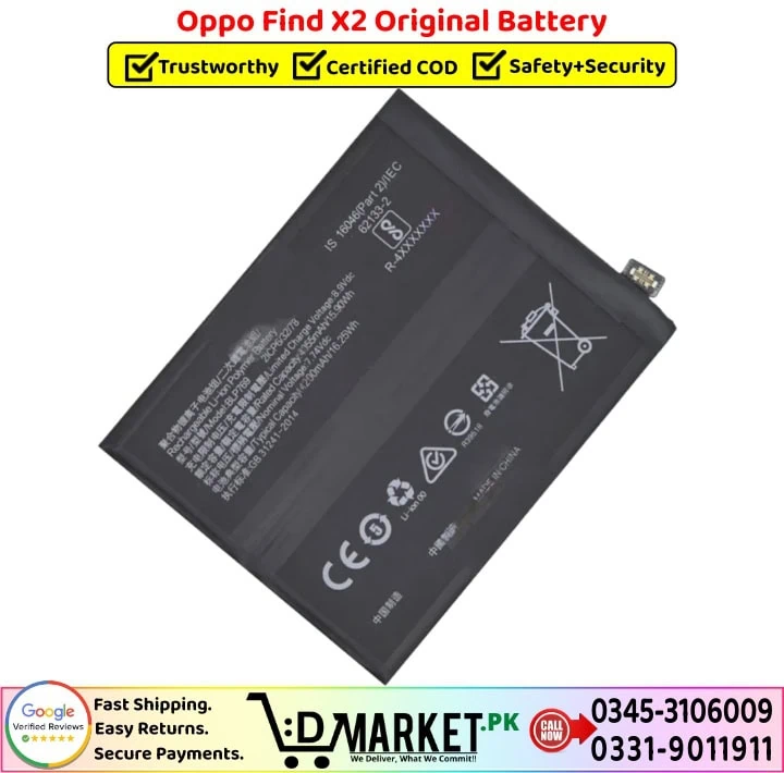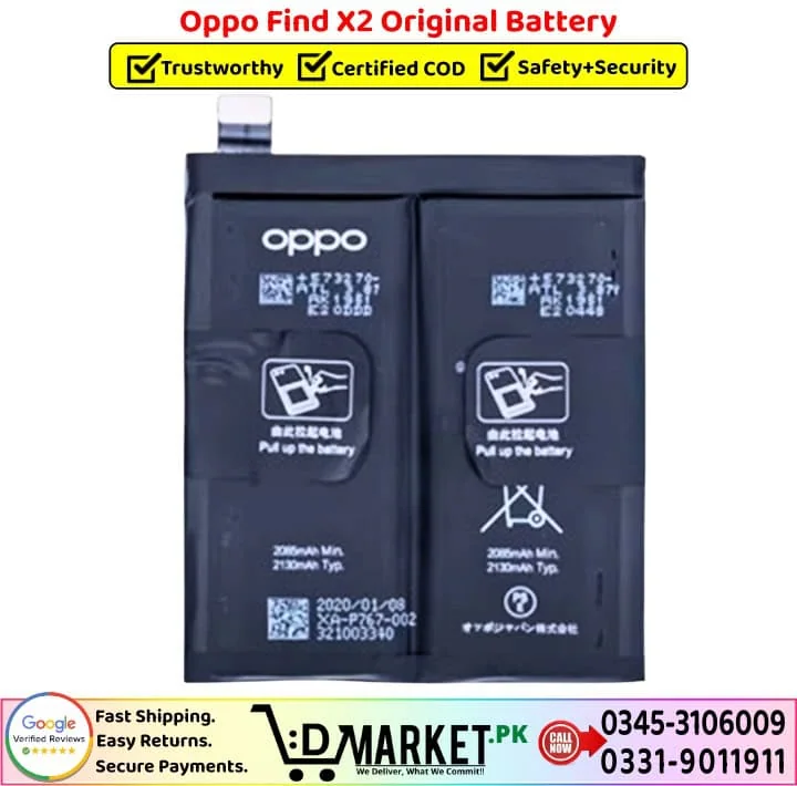 Order the Oppo Find X2 Original Battery online from DMarket.pk with fast delivery, or buy directly from our Service Centre, both with OEM-grade tested quality.