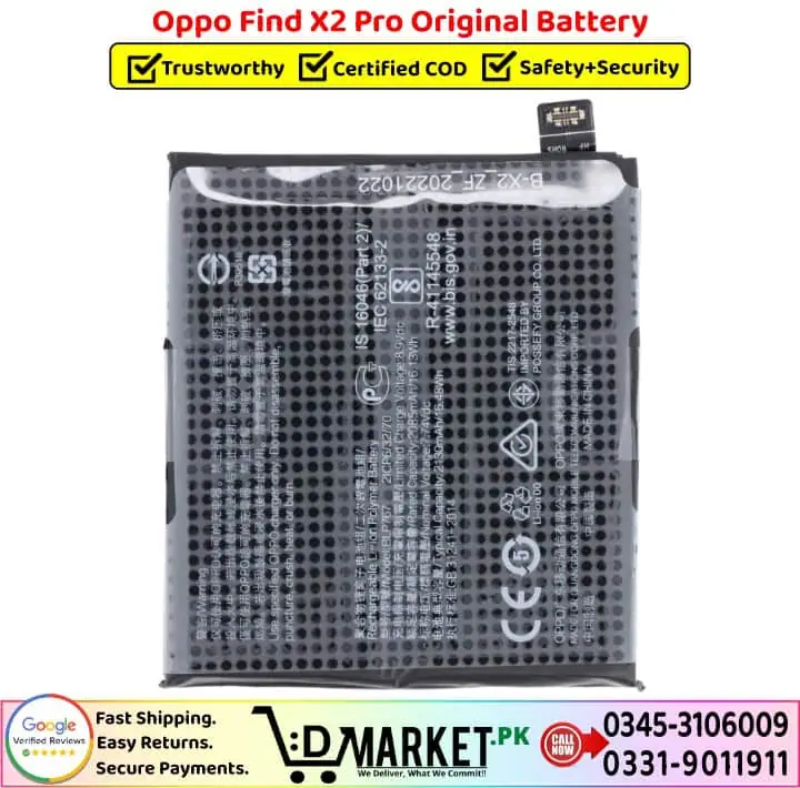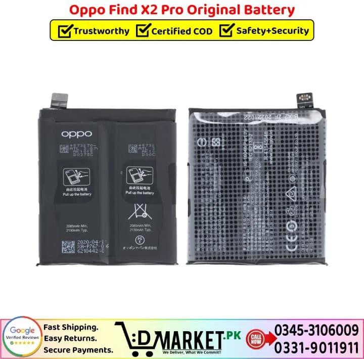 Order the Oppo Find X2 Pro Original Battery online from DMarket.pk with fast delivery, or buy directly from our Service Centre, both with OEM-grade tested quality.