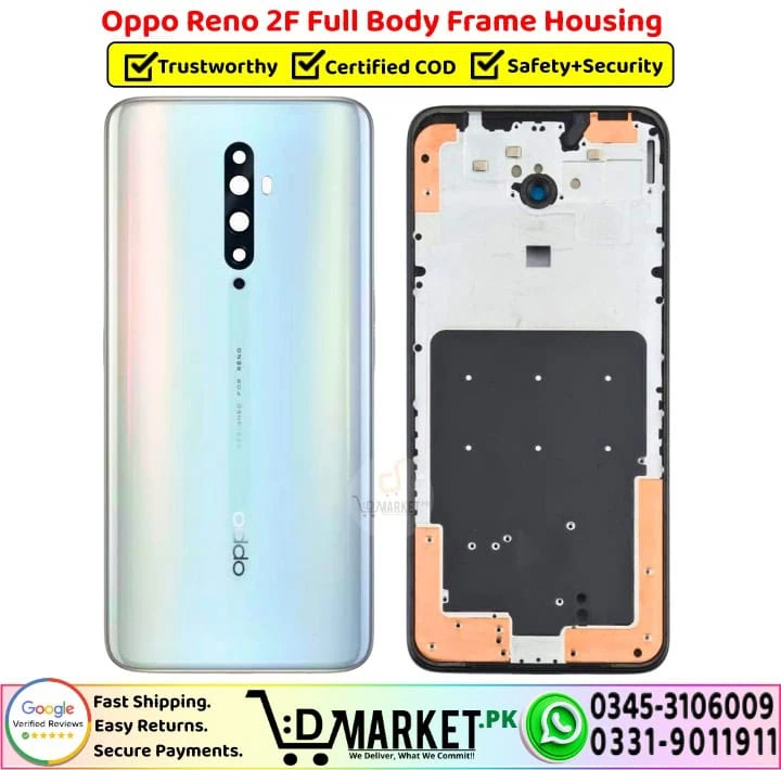 Every Oppo Reno 2F Full Body Frame Housing we supply is carefully checked for build quality, fitting, and durability before dispatch. This ensures you receive a strong, reliable Middle Frame plate housing that fits perfectly without gaps or alignment issues. No need to search the market — get genuine, high-quality mobile parts delivered to your doorstep with trusted after-sales support. Full Body Frame Housing Banner - DMarket.PkWe provide fast delivery and professional repair services across Pakistan, covering cities, towns, and villages nationwide. When you shop with us, you’re not just buying a part — you’re choosing trusted support and long-term reliability.