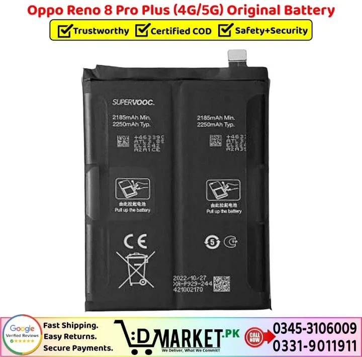 Order the Oppo Reno 8 Pro Plus Original Battery online from DMarket.pk with fast delivery, or buy directly from our Service Centre, both with OEM-grade tested quality.