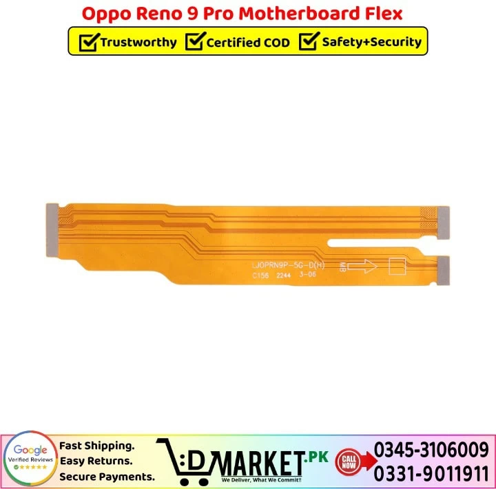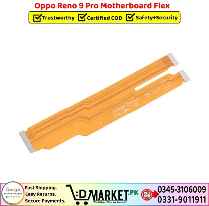 Option 2: Online Professional Repair with DMarket.pk Want expert repair from the comfort of your home? Our professional repair services at DMarket.pk make it easy! Simply visit our Repair Services page, fill out the form, and our agent will contact you with complete details and total charges. If you’re satisfied, courier your device to us. We’ll fix your Oppo Reno 9 Pro Motherboard Flex and deliver it back fully repaired. Pay via cash on delivery only when you receive your fixed device. We believe this unique service sets us apart in Pakistan!