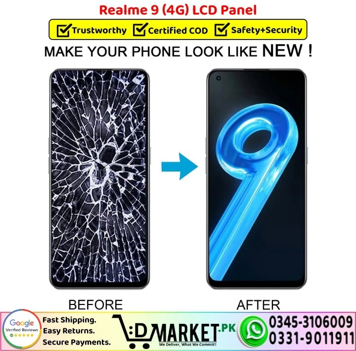 Option 2: Online Professional Repair with DMarket.pk Want expert repair from the comfort of your home? Our professional repair services at DMarket.pk make it easy! Simply visit our Repair Services page, fill out the form, and our agent will contact you with complete details and total charges. If you’re satisfied, courier your device to us. We’ll fix your Realme 9 4G LCD Panel screen and deliver it back fully repaired. Pay via cash on delivery only when you receive your fixed device. We believe this unique service sets us apart in Pakistan!