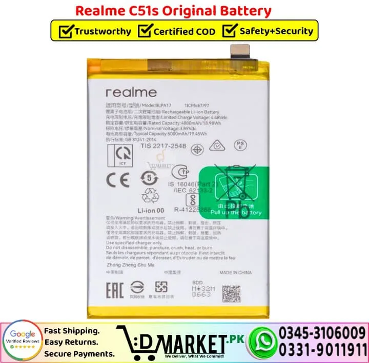 We make buying the right battery for your device simple, reliable, and stress-free. Here’s why thousands of customers trust DMarket.Pk for their Realme C51s Original Battery: