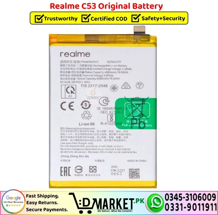 We make buying the right battery for your device simple, reliable, and stress-free. Here’s why thousands of customers trust DMarket.Pk for their Realme C53 Original Battery: