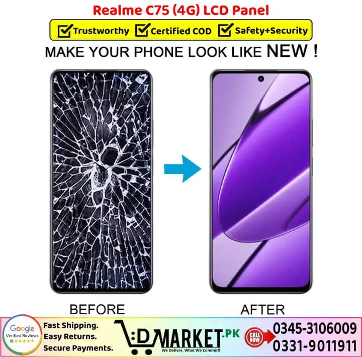Option 2: Online Professional Repair with DMarket.pk Want expert repair from the comfort of your home? Our professional repair services at DMarket.pk make it easy! Simply visit our Repair Services page, fill out the form, and our agent will contact you with complete details and total charges. If you’re satisfied, courier your device to us. We’ll fix your Realme C75 4G LCD Panel screen and deliver it back fully repaired. Pay via cash on delivery only when you receive your fixed device. We believe this unique service sets us apart in Pakistan!
