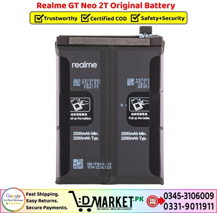 At D-LAB Repair Services, our experienced technicians provide professional battery replacement using OEM-grade parts. Whether your battery is swollen, faulty, or no longer delivering backup, we ensure safe removal of the old battery and proper installation of the new one.You can submit a request through our repair services page or visit our service center directly for complete assistance.We make buying the right battery for your device simple, reliable, and stress-free. Here’s why thousands of customers trust DMarket.Pk for their Realme GT Neo 2T Original Battery: