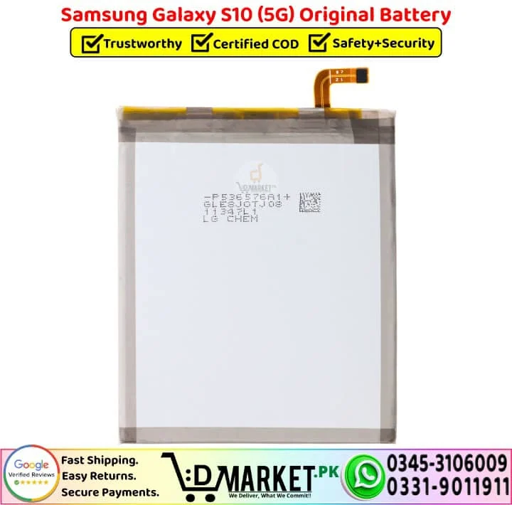 Order the Samsung Galaxy S10 5G Original Battery online from DMarket.pk with fast delivery, or buy directly from our Service Centre, both with OEM-grade tested quality.