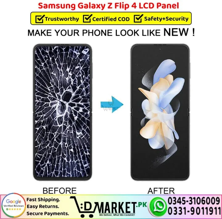 Option 2: Online Professional Repair with DMarket.pk Want expert repair from the comfort of your home? Our professional repair services at DMarket.pk make it easy! Simply visit our Repair Services page, fill out the form, and our agent will contact you with complete details and total charges. If you’re satisfied, courier your device to us. We’ll fix your Samsung Galaxy Z Flip 4 LCD Panel screen and deliver it back fully repaired. Pay via cash on delivery only when you receive your fixed device. We believe this unique service sets us apart in Pakistan!