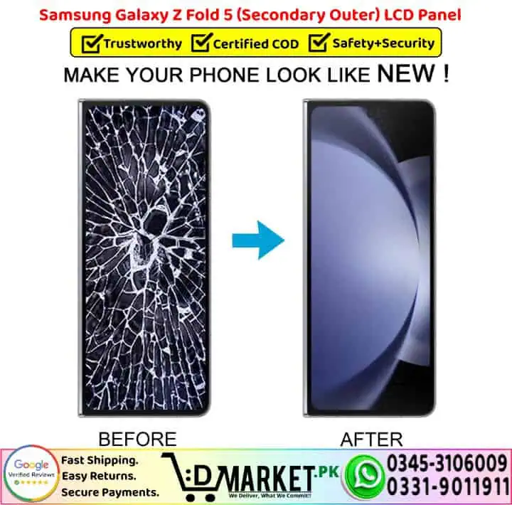 Option 2: Online Professional Repair with DMarket.pk Want expert repair from the comfort of your home? Our professional repair services at DMarket.pk make it easy! Simply visit our Repair Services page, fill out the form, and our agent will contact you with complete details and total charges. If you’re satisfied, courier your device to us. We’ll fix your Samsung Galaxy Z Fold 5 Outer LCD Panel screen and deliver it back fully repaired. Pay via cash on delivery only when you receive your fixed device. We believe this unique service sets us apart in Pakistan!