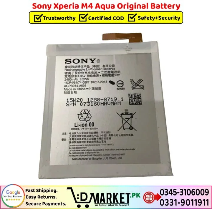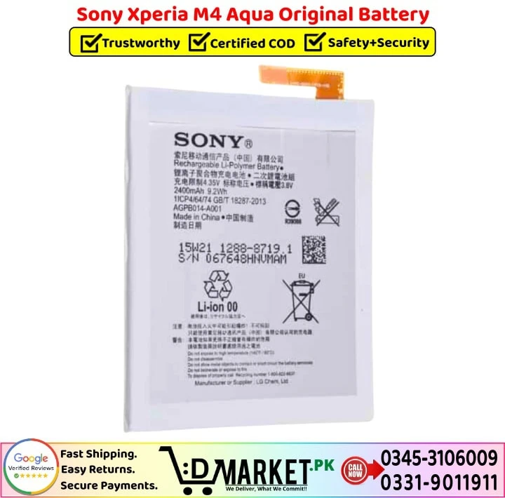 Order the Sony Xperia M4 Aqua Original Battery online from DMarket.pk with fast delivery, or buy directly from our Service Centre, both with OEM-grade tested quality.