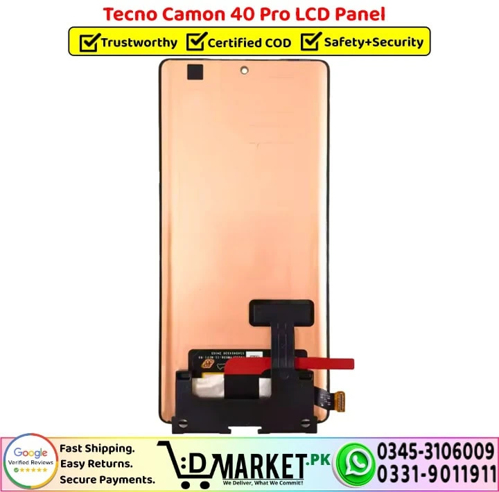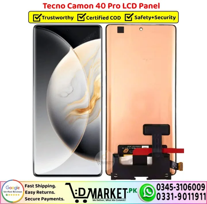 Option 2: Online Professional Repair with DMarket.pk Want expert repair from the comfort of your home? Our professional repair services at DMarket.pk make it easy! Simply visit our Repair Services page, fill out the form, and our agent will contact you with complete details and total charges. If you’re satisfied, courier your device to us. We’ll fix your Tecno Camon 40 Pro LCD Panel screen and deliver it back fully repaired. Pay via cash on delivery only when you receive your fixed device. We believe this unique service sets us apart in Pakistan!