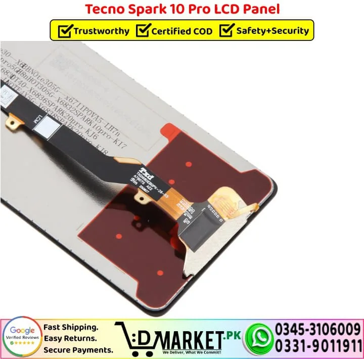 Option 2: Online Professional Repair with DMarket.pk Want expert repair from the comfort of your home? Our professional repair services at DMarket.pk make it easy! Simply visit our Repair Services page, fill out the form, and our agent will contact you with complete details and total charges. If you’re satisfied, courier your device to us. We’ll fix your Tecno Spark 10 Pro LCD Panel screen and deliver it back fully repaired. Pay via cash on delivery only when you receive your fixed device. We believe this unique service sets us apart in Pakistan!