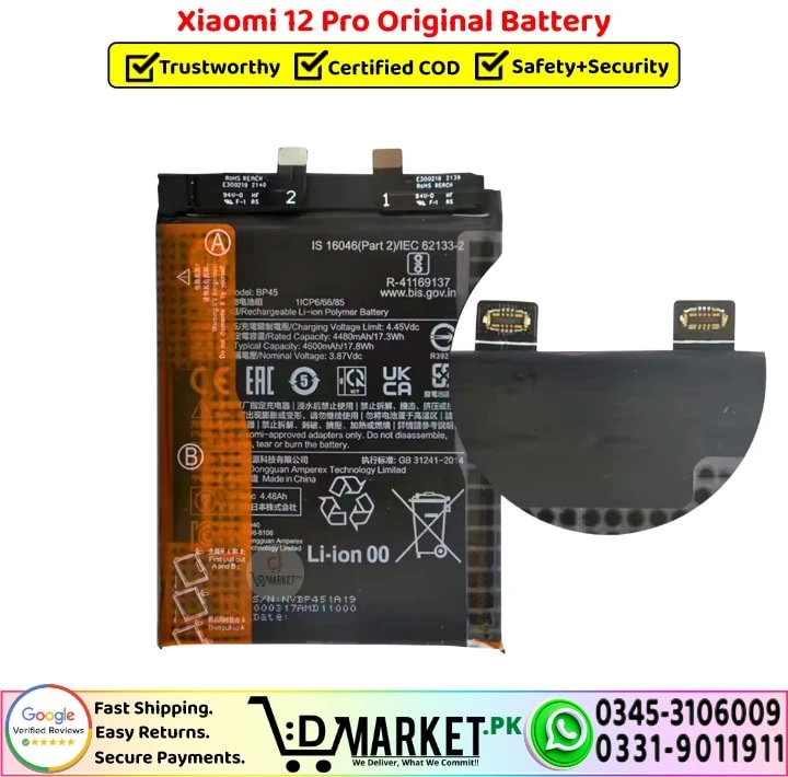 Order the Xiaomi 12 Pro Original Battery online from DMarket.pk with fast delivery, or buy directly from our Service Centre, both with OEM-grade tested quality.
