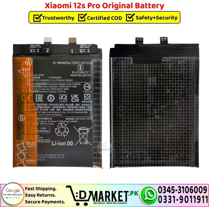 Order the Xiaomi 12s Pro Original Battery online from DMarket.pk with fast delivery, or buy directly from our Service Centre, both with OEM-grade tested quality.