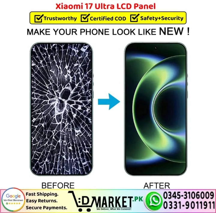 Option 2: Online Professional Repair with DMarket.pk Want expert repair from the comfort of your home? Our professional repair services at DMarket.pk make it easy! Simply visit our Repair Services page, fill out the form, and our agent will contact you with complete details and total charges. If you’re satisfied, courier your device to us. We’ll fix your Xiaomi 17 Ultra LCD Panel screen and deliver it back fully repaired. Pay via cash on delivery only when you receive your fixed device. We believe this unique service sets us apart in Pakistan!