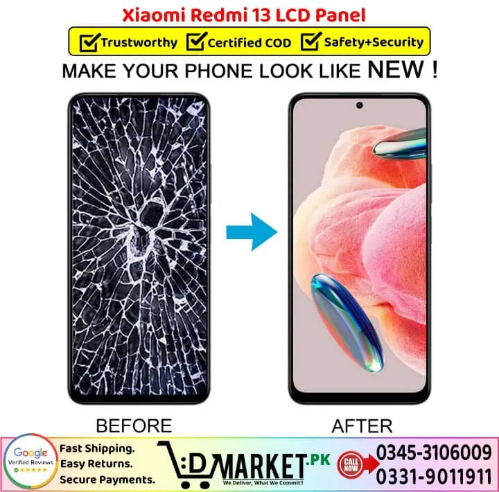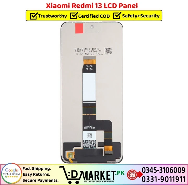 Option 2: Online Professional Repair with DMarket.pk Want expert repair from the comfort of your home? Our professional repair services at DMarket.pk make it easy! Simply visit our Repair Services page, fill out the form, and our agent will contact you with complete details and total charges. If you’re satisfied, courier your device to us. We’ll fix your Xiaomi Redmi 13 LCD Panel screen and deliver it back fully repaired. Pay via cash on delivery only when you receive your fixed device. We believe this unique service sets us apart in Pakistan!